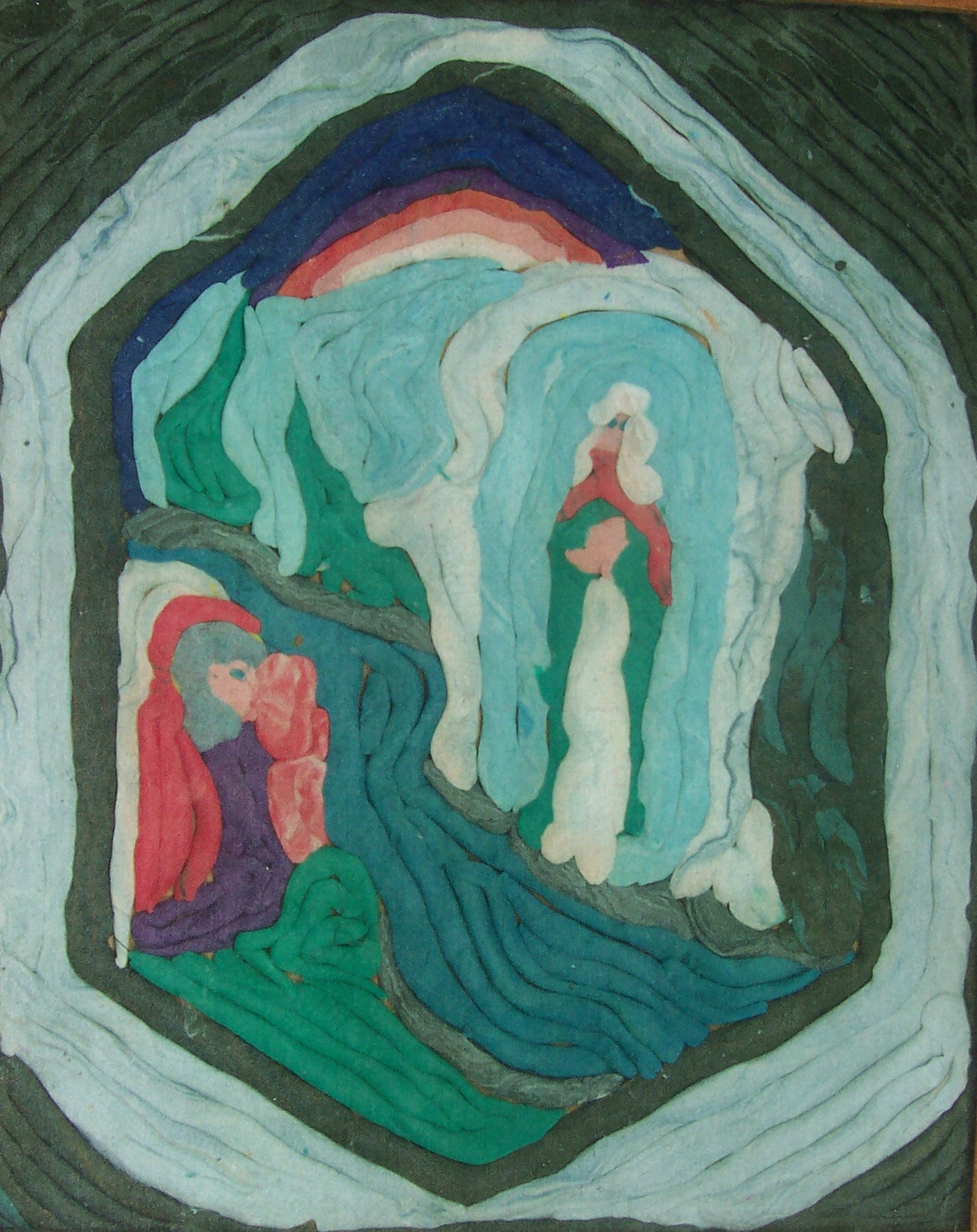 One example of the coloured clay picture-forming technique can be seen at this time. Some of this year’s paintings will also be visible.